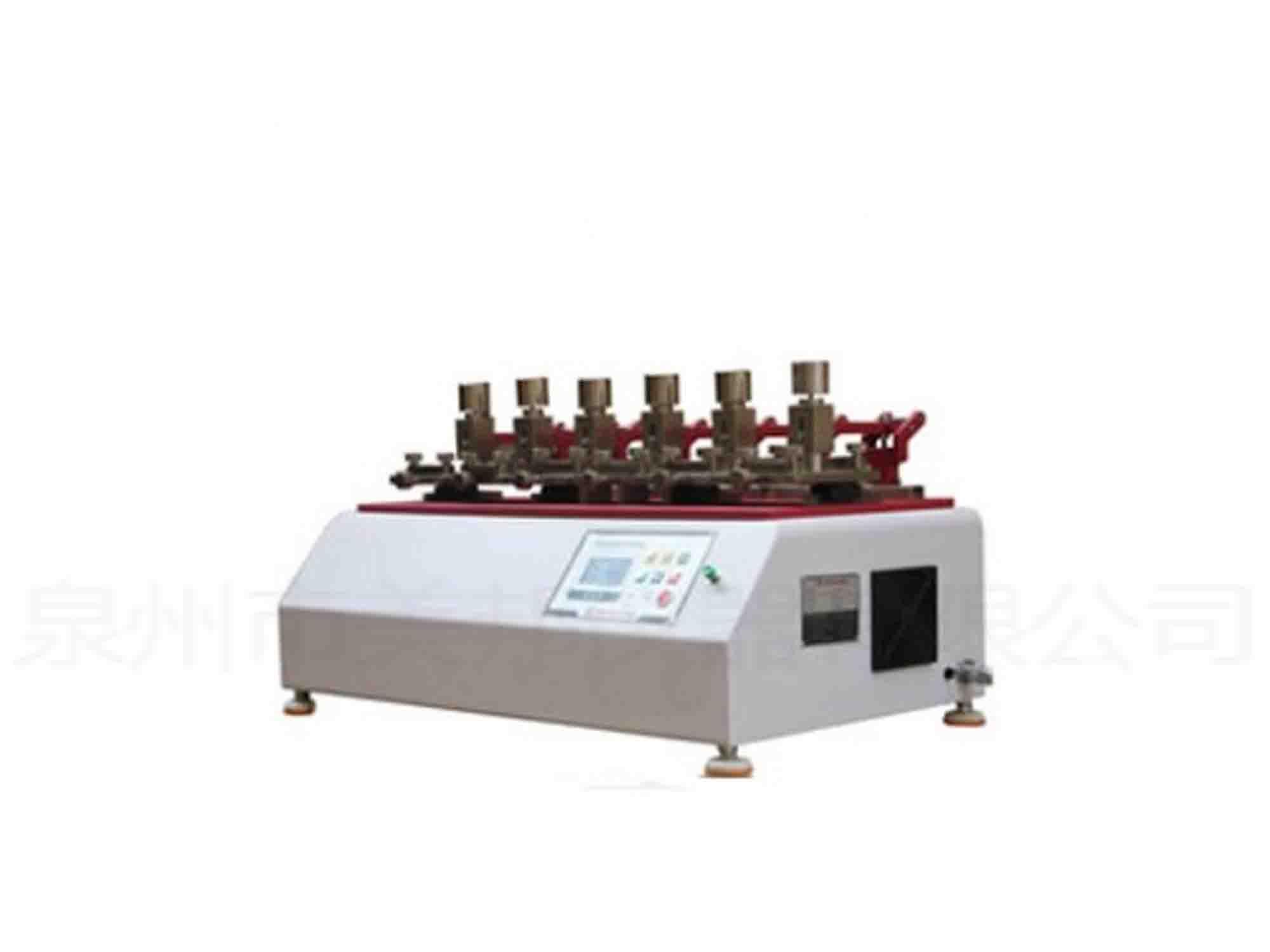 本機(jī)系用干燥或潮濕的白色羊毛布,包在摩擦錘上,往復(fù)摩擦在經(jīng)過染色的鞋面或內(nèi)襯皮革上,試驗(yàn)后在觀察其脫色程度或受損的情形。