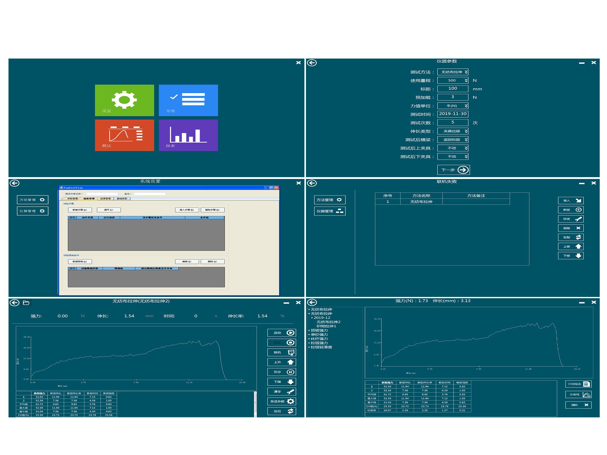 用于無(wú)紡布、粘合襯布、多層膠合織物及熱熔粘合襯與服裝面料粘合、襯布與面料粘合、涂層粘附等各種拉伸、彈性回復(fù)、剝離強(qiáng)力測(cè)試。