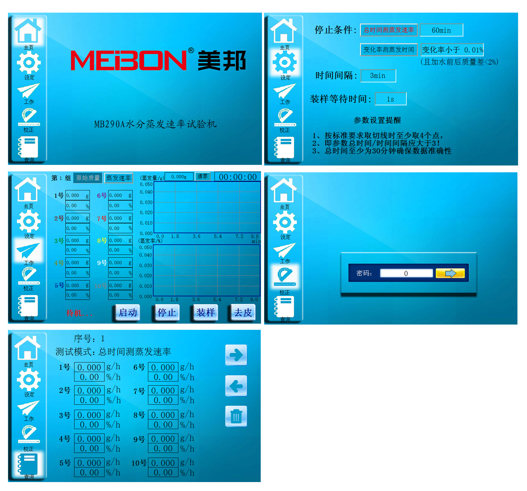 6、試驗稱量時間間隔可設定,兩種終止方式:質量變化率與試驗時間。