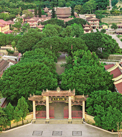 福建莆田南山廣化寺列為全國三大模范叢林之一,松柏蒼翠,山泉鳴澗,清幽寧靜;相傳千年之前,滔滔東海之水,直涌至南山腳下,行云流霞與青翠松柏交相輝映,構(gòu)成了一幅無比生動的畫卷,故有“南山松柏”佳景之稱;如今,千年古剎香火旺盛,歷史古跡完好保留,人行其間,綠蔓牽衣,別有一番禪意。