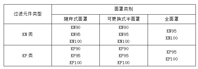 表 1 GB2626-2006 面罩的分類
