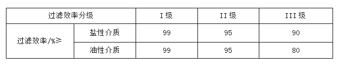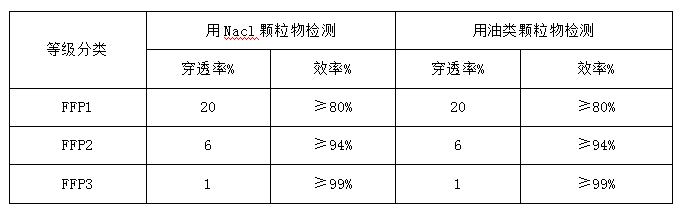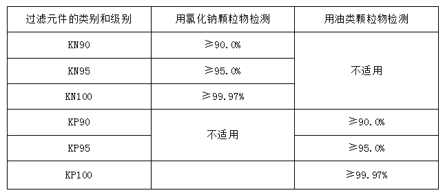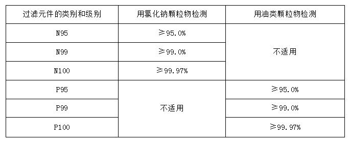 表 5 GB19083-2010 口罩的過濾效率級別及要求