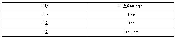 表 2 GB2626-2006 面罩的過濾效率級別及要求