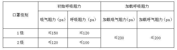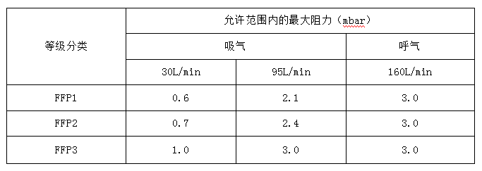 表 14 EN149 標(biāo)準 口罩的呼吸阻力要求