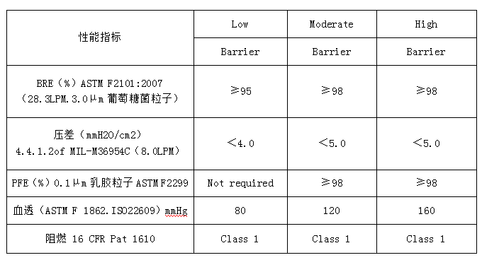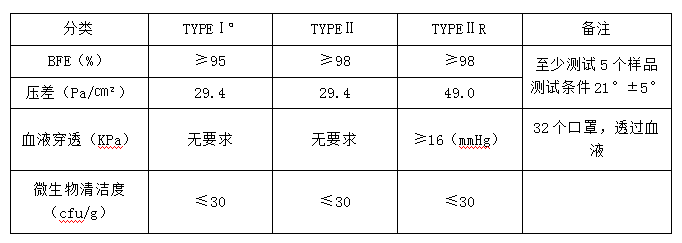 注:a 代表著這種材料只能給病人、易過敏的人群 該標(biāo)準的 BFE 測試流量為 28.3L/min; 壓差測試流量為 8L/min,試驗面積為 4.9cm2。