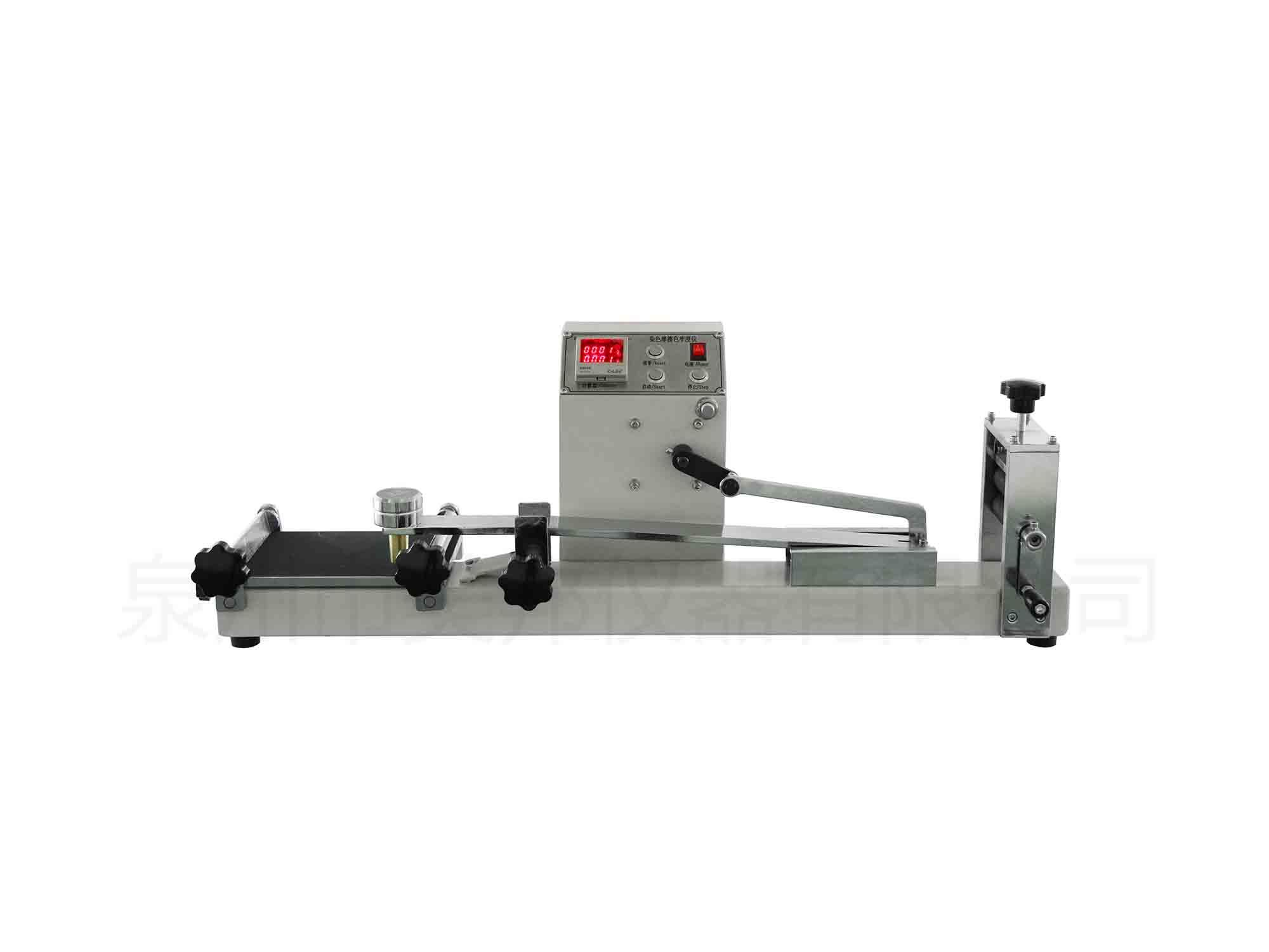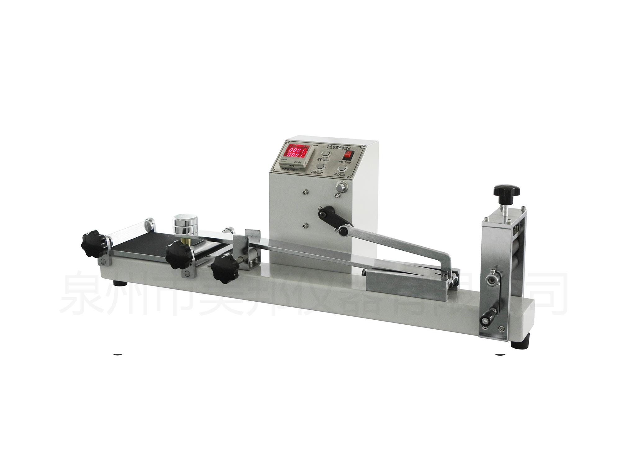 本儀器是由曲柄連桿機構(gòu)帶動摩擦頭以規(guī)定速度在標準壓重下做往復(fù)直線運動,達到規(guī)定次數(shù),電機自動停止運轉(zhuǎn);主要用于棉、毛、麻、絲、針織、印染等行業(yè),作為測定各類織物顏色耐干、濕摩擦、刷洗色牢度試驗的測試儀器。