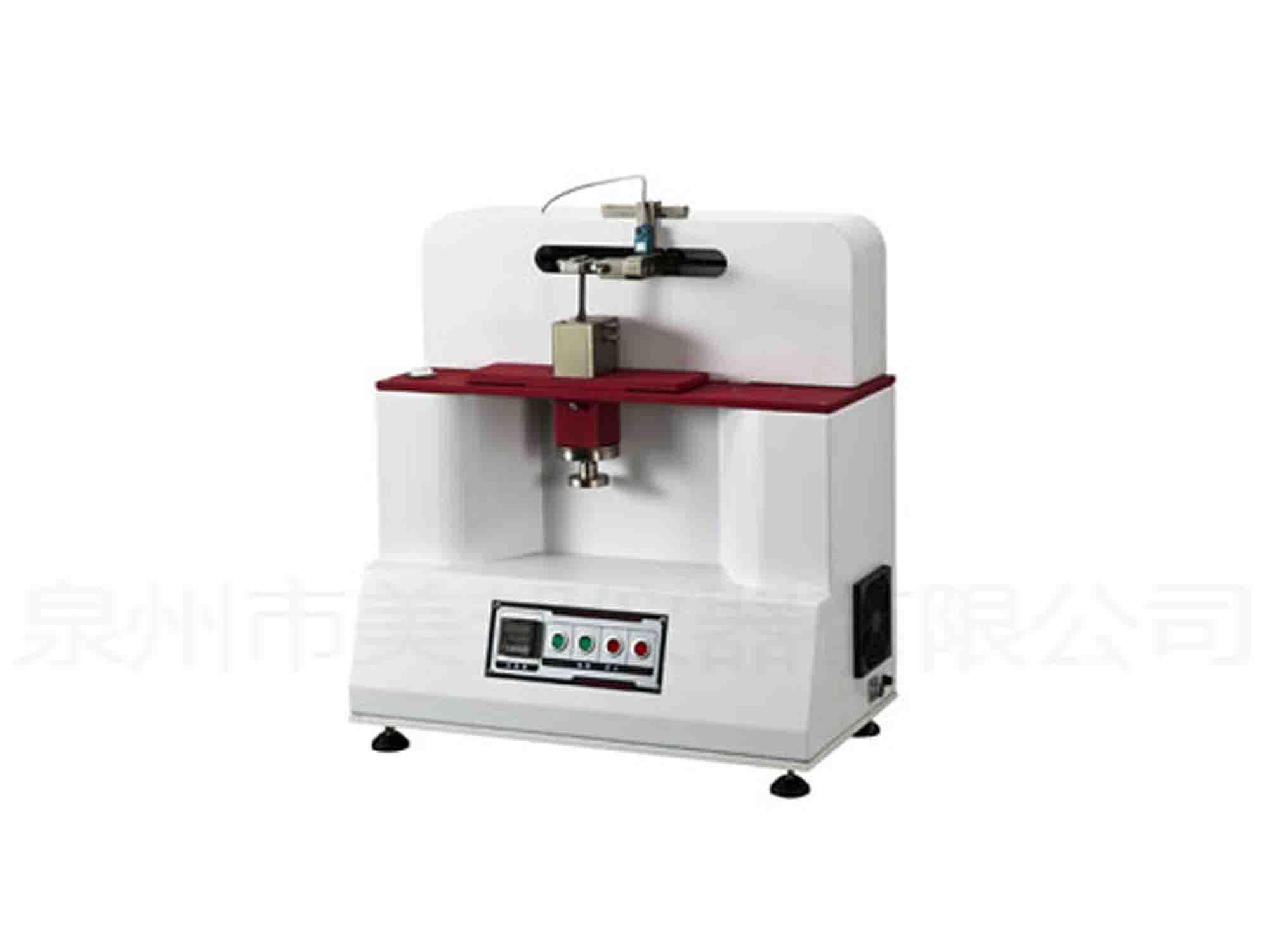 This machine is suitable for inspection of shoes for core anti fatigue ability, the principle is the core of the respective ends of the clamp is fixed with two groups, then to put stress on the fixture at the core to 4 cycles per second frequency as bending movement, after a certain number of samples is examining the extent of the damage.