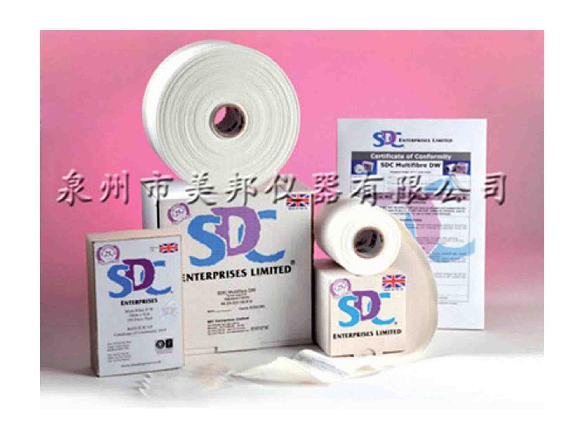 SDC fiber DW in color fastness test many ISO 105 C and E series as lining fabric, which is composed of narrow fabric structure, and comprises the following components: two acetic acid (cellulose acetate fiber), cotton, polyamide (nylon), polyester (PET), polypropylene fiber (acrylic acid) and wool, and with many chain stores fastness test specification. It is a strict quality control procedure, which is completed by an independent laboratory accredited by the UK certification service organization.